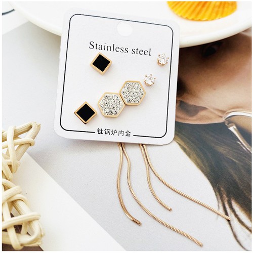 Bộ 3 Đôi Bông Tai Titan Ko Đen TT 3483