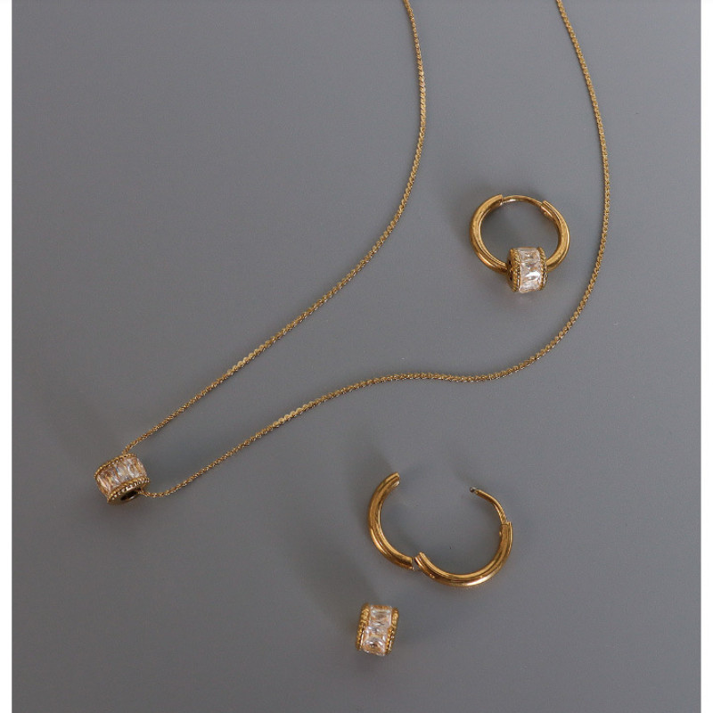 - Kích thước: dây chuyền 40+5cm, bông tai 1.6cm