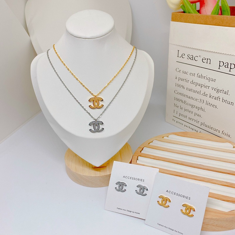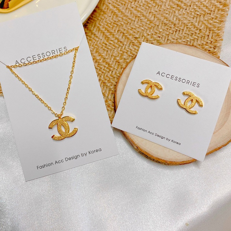 Bộ Trang Sức Bông Tai Và Dây Chuyền Nữ Titan Ko Đen Chanel Chạm Cát TT 4074