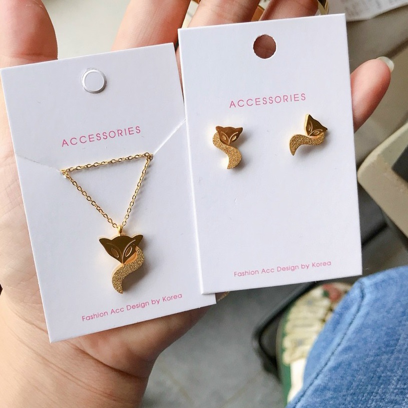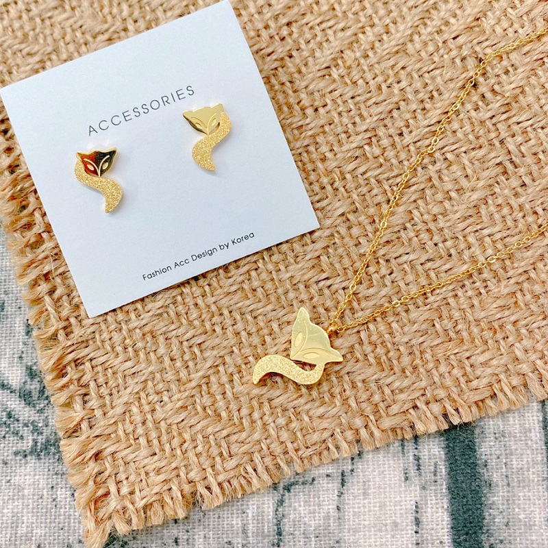 Bộ Trang Sức Bông Tai Và Dây Chuyền Nữ Titan Ko Đen Hồ Ly TT 4072