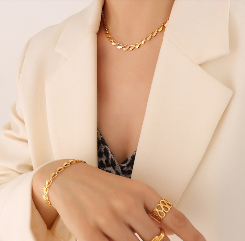 Bộ Trang Sức Dây Chuyền Hoặc Lắc Tay Hoa Văn Titan Không Han Rỉ TT4554