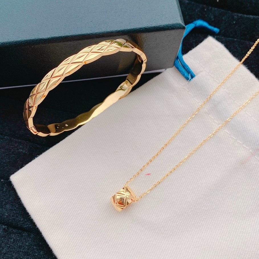 Bộ Trang Sức Nữ Vòng Tay Và Dây Chuyền Titan Không Rỉ Kiểu Khắc Chéo TT 4096