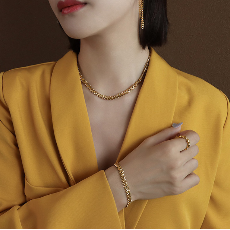 Dây Chuyền Hoặc Lắc Tay Hình Lá Titan Ko Han Rỉ TT 3950