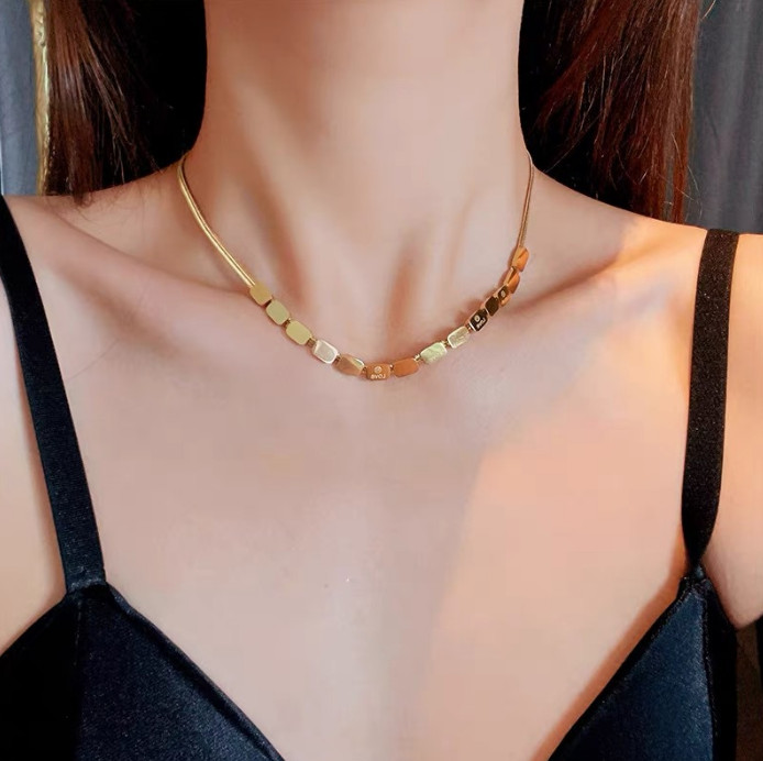 Dây Chuyền Hoặc Lắc Tay Sợi Mì Dẹt Nhiều Hình Vuông Khắc Chữ Love Titan Ko Đen TT 4368