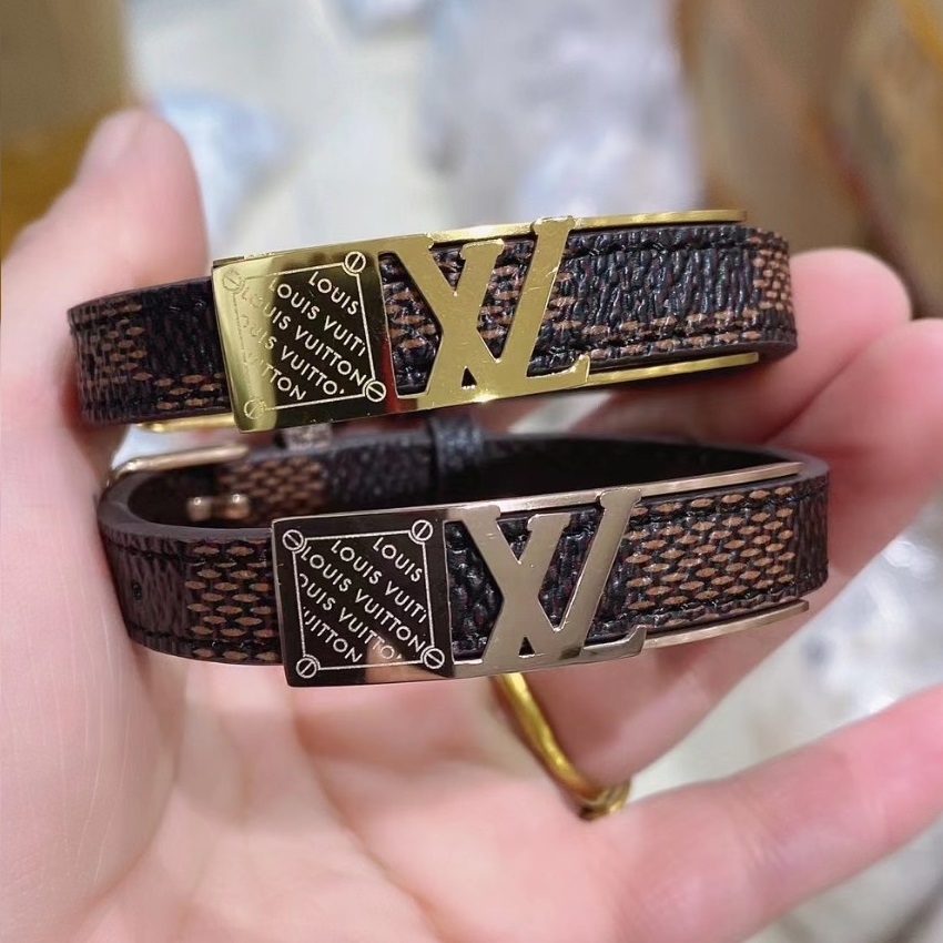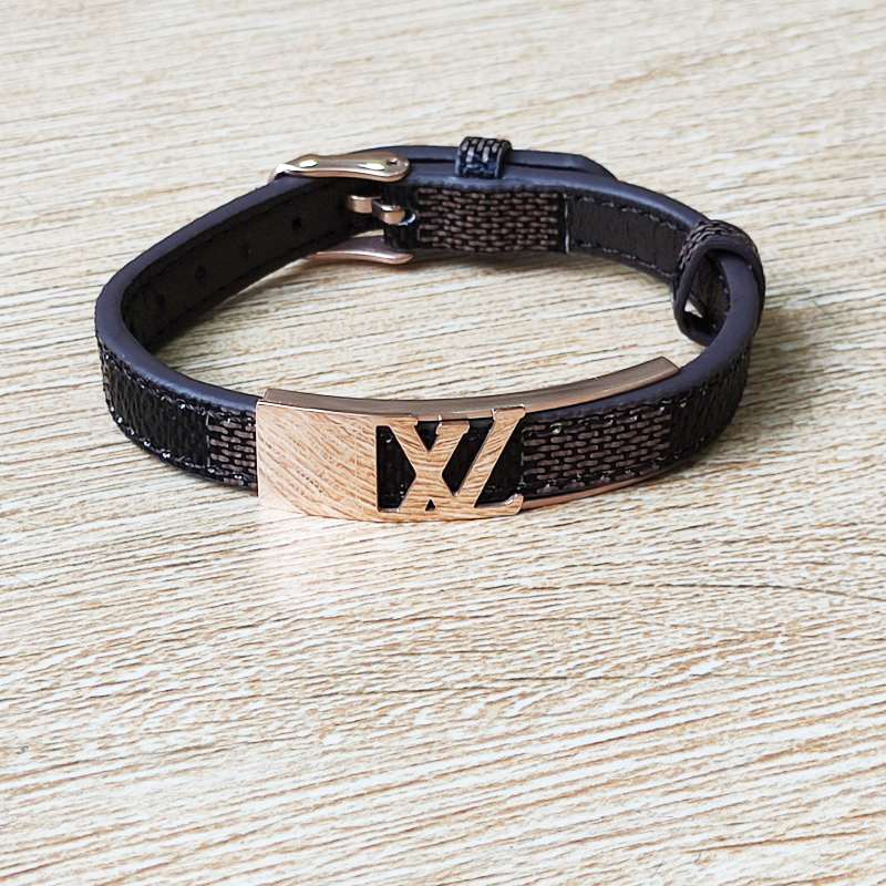 Vòng Tay Nam Dây Da LV Thép Titan Ko Han Rỉ TT 3730