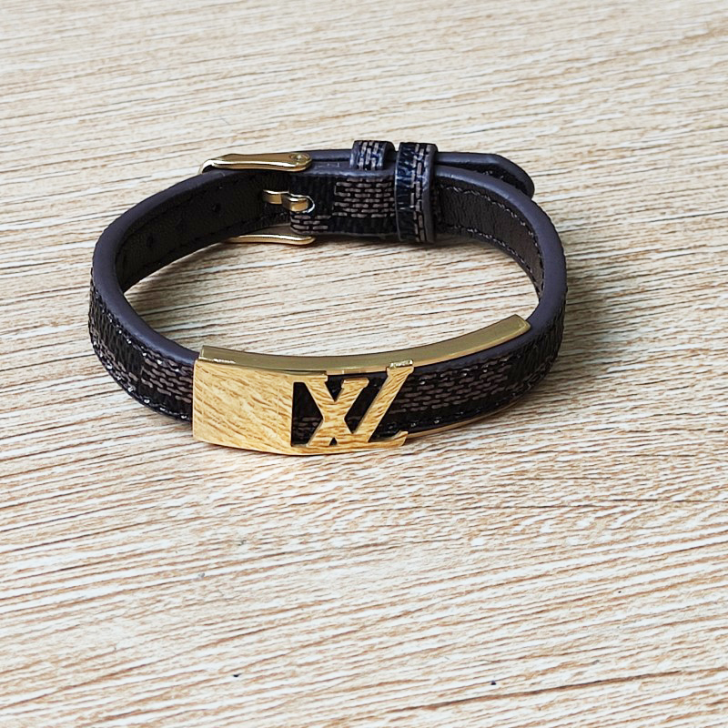Vòng Tay Nam Dây Da LV Thép Titan Ko Han Rỉ TT 3730