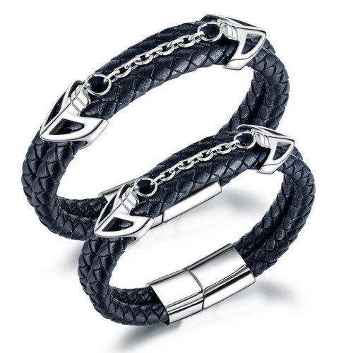 Vòng Tay Nam Dây Da Titan Ko Đen TT 2579