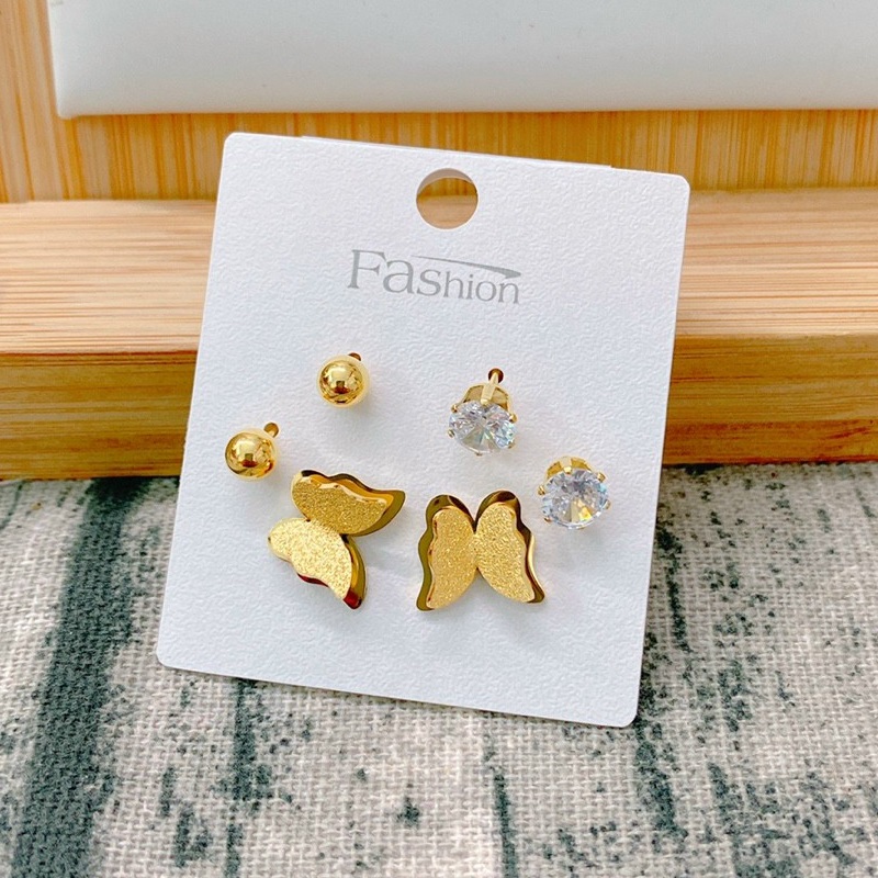 Bộ 3 Đôi Bông Tai Nữ Titan Không Rỉ Bướm Chạm Cát TT 4090
