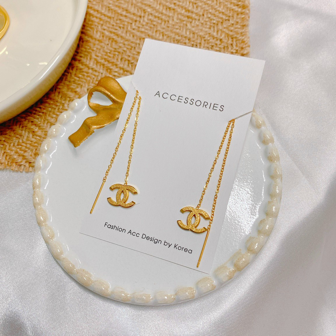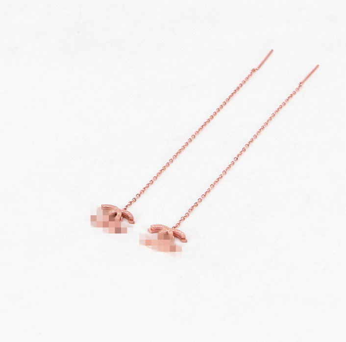 Bông Tai Chuỗi Dài Chanel Chạm Cát Titan Ko Han Rỉ TT 4008