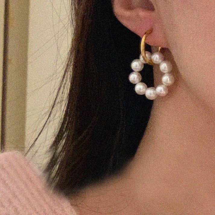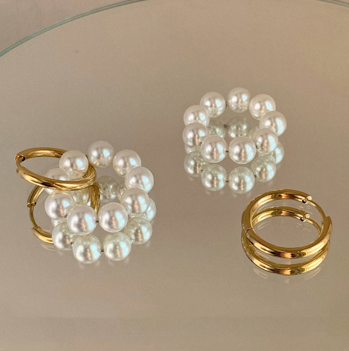 Bông Tai Khoen Tròn Ngọc Trai Chất Liệu Titan Không Han Rỉ TT4498