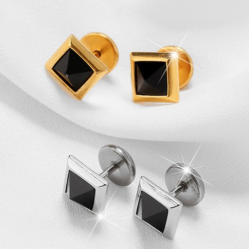 Bông Tai Nam Hình Vuông Đá Đen Titan Ko Đen TT 3446