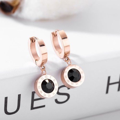 Bông Tai Tòn Ten Mặt Tròn Đá Đen Titan Ko Đen TT 3321