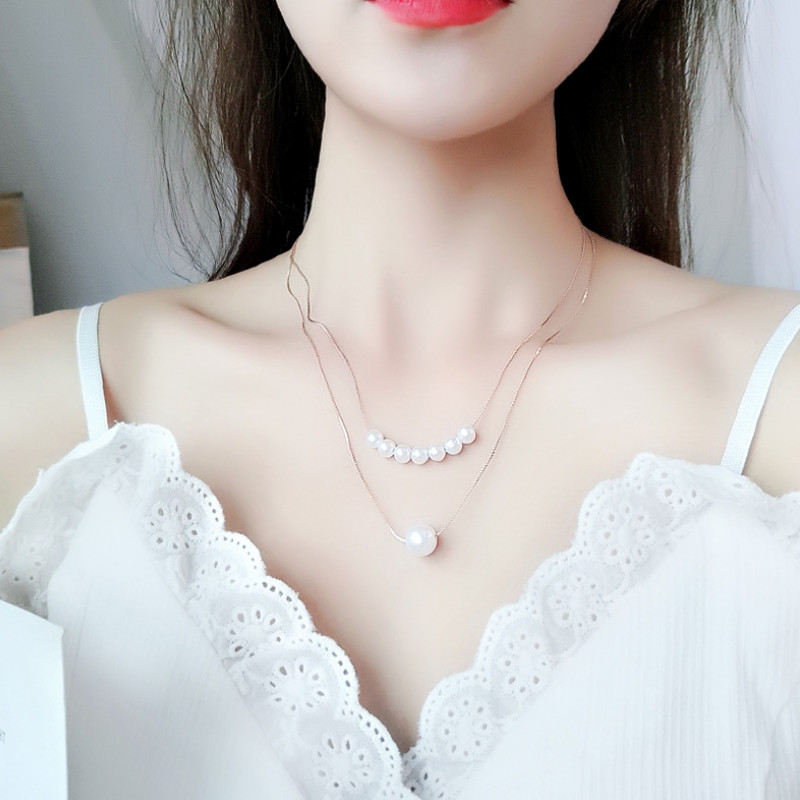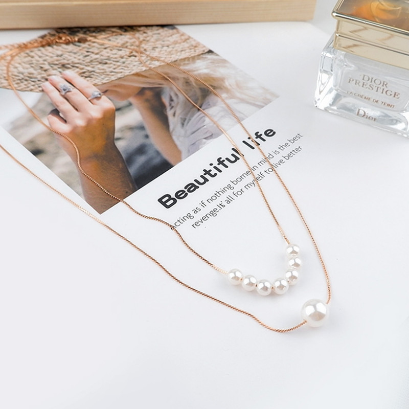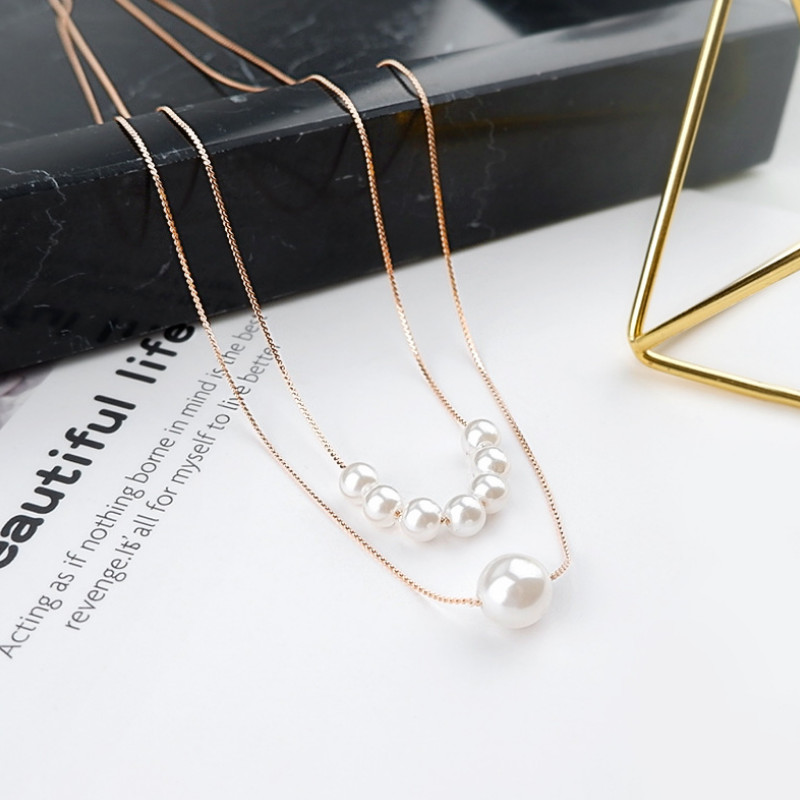 Dây Chuyền 2 Tầng Ngọc Trai Titan Ko Đen TT 3740