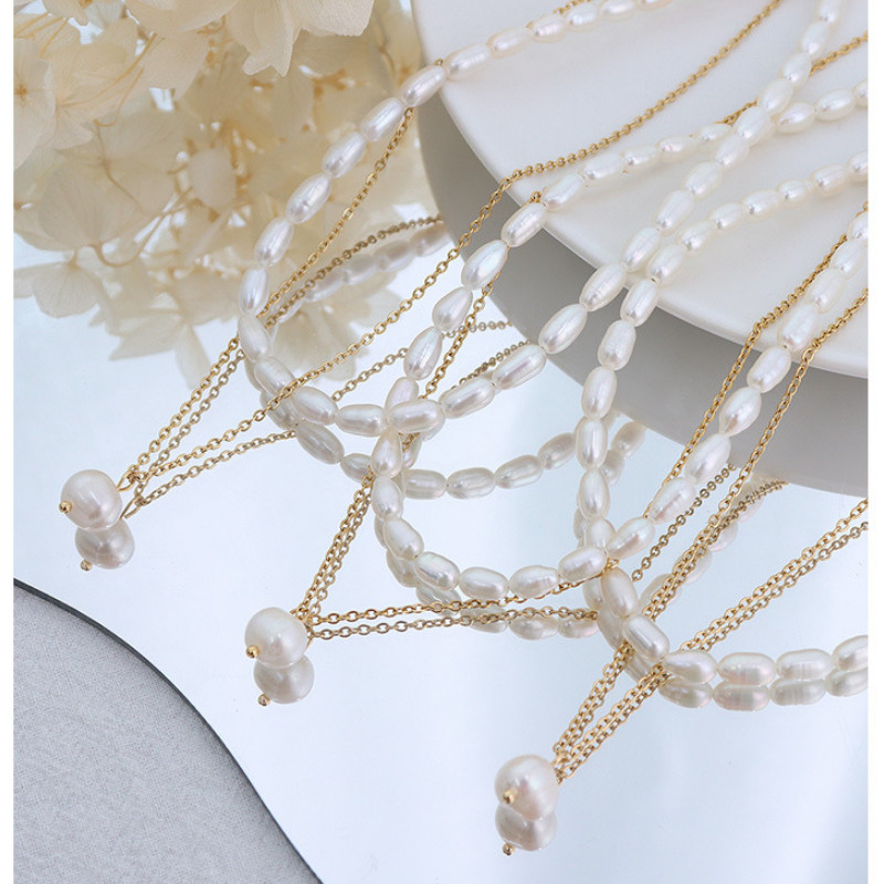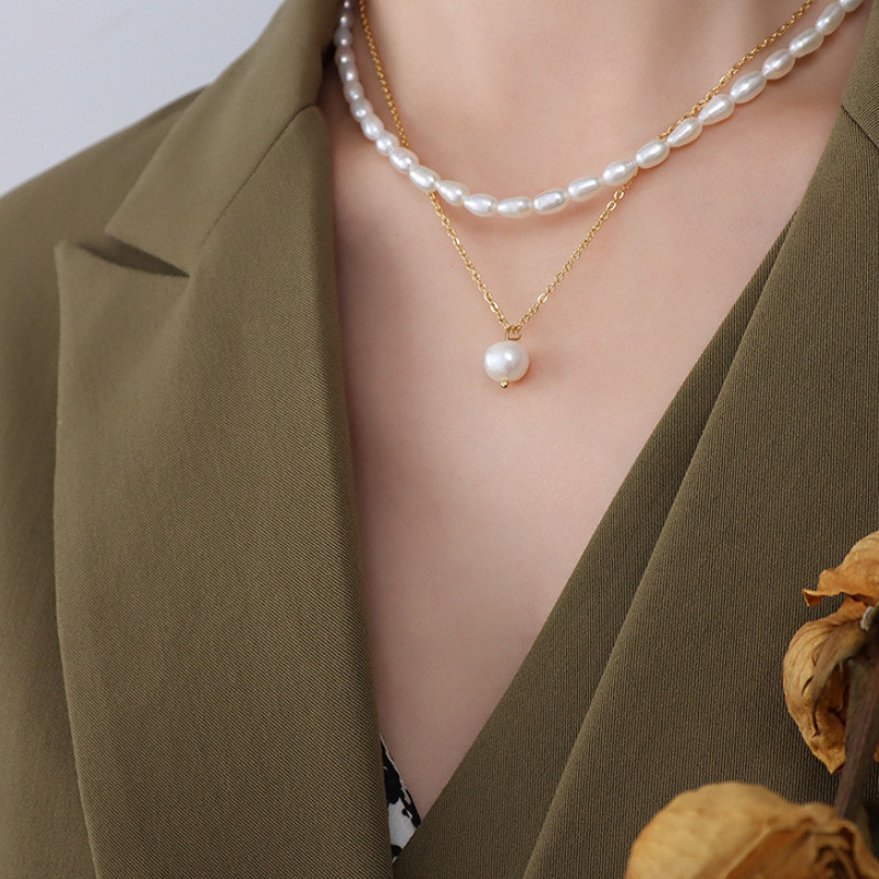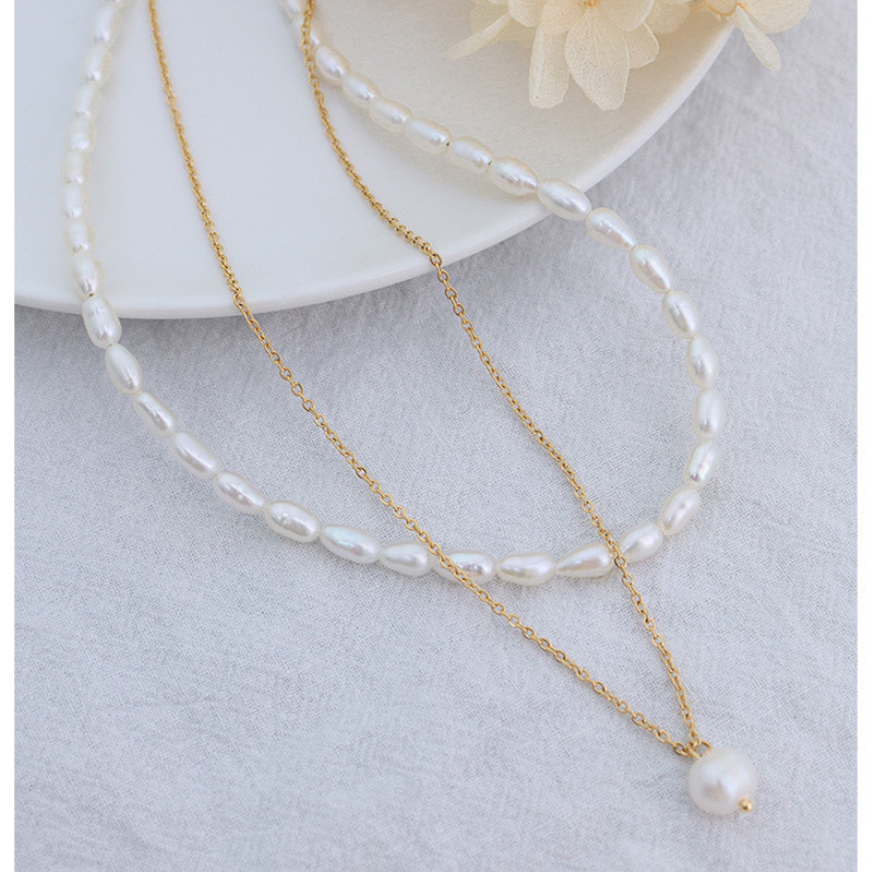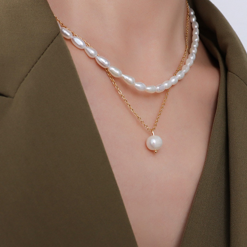 Dây Chuyền 2 Tầng Ngọc Trai Titan Ko Han Rỉ TT 3959