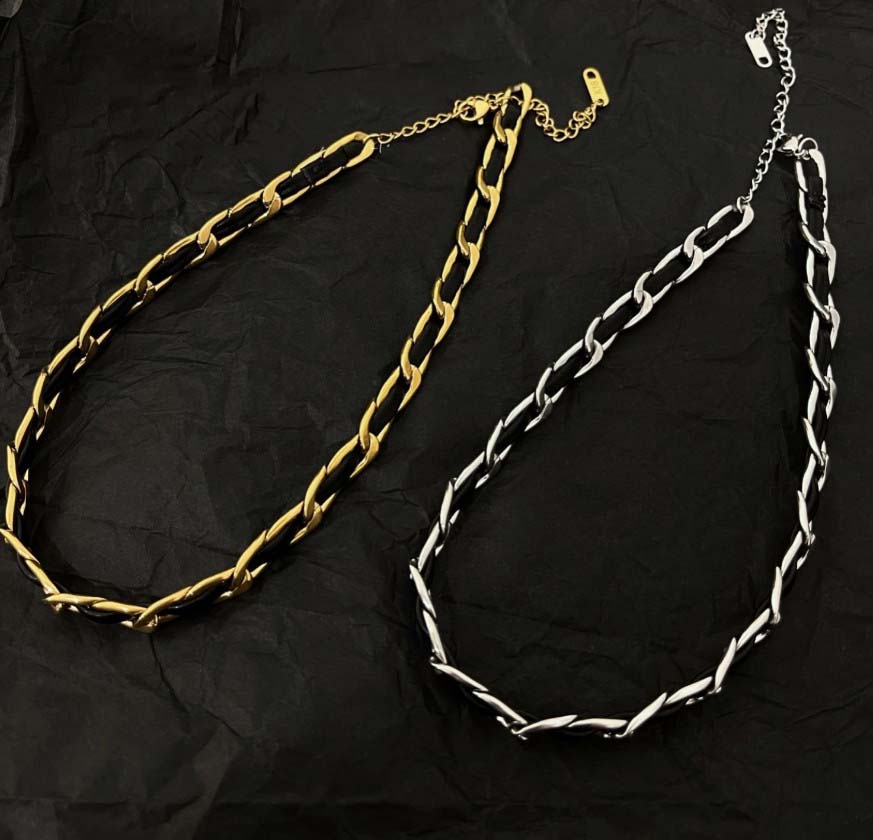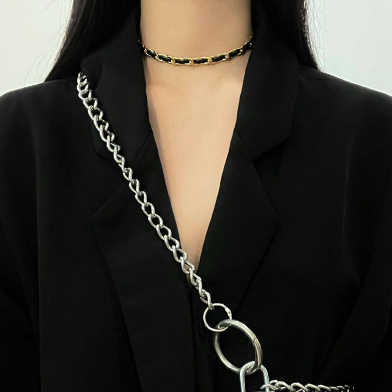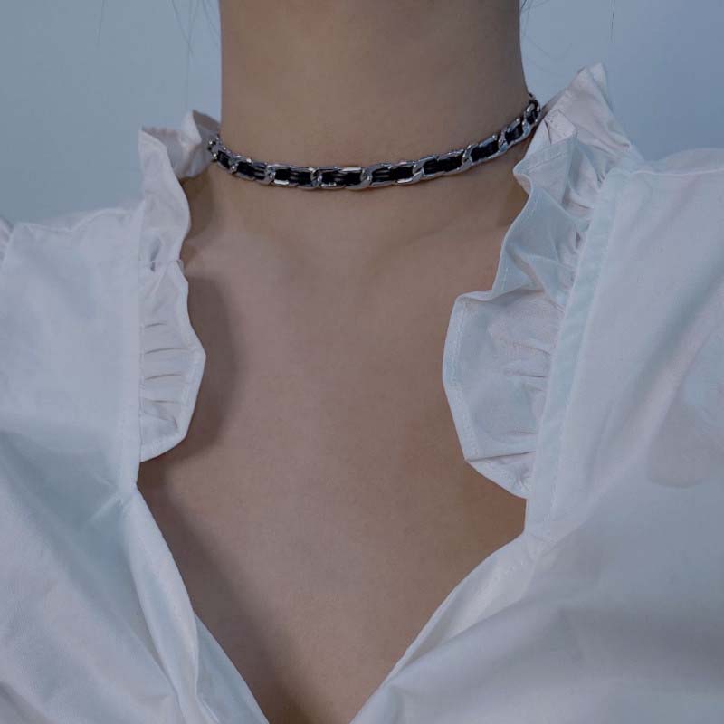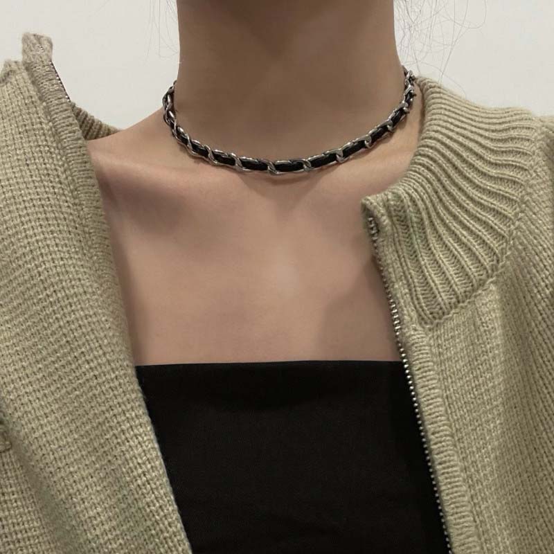 Dây Chuyền Choker Bằng Da Và Titan Ko Đen TT4625