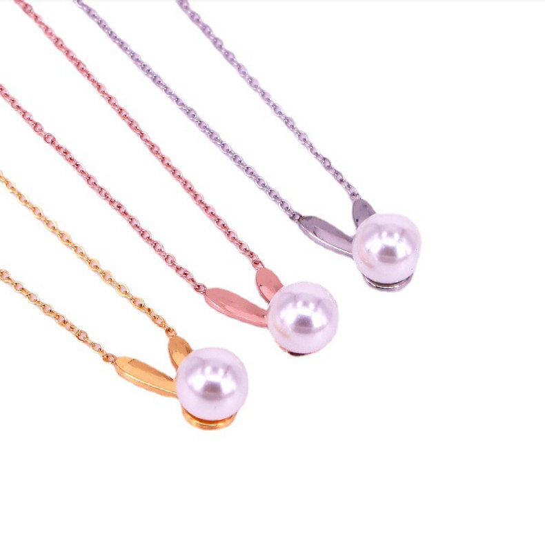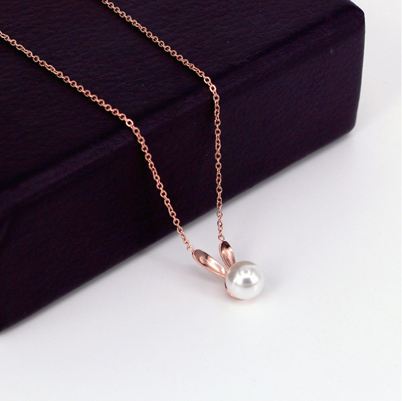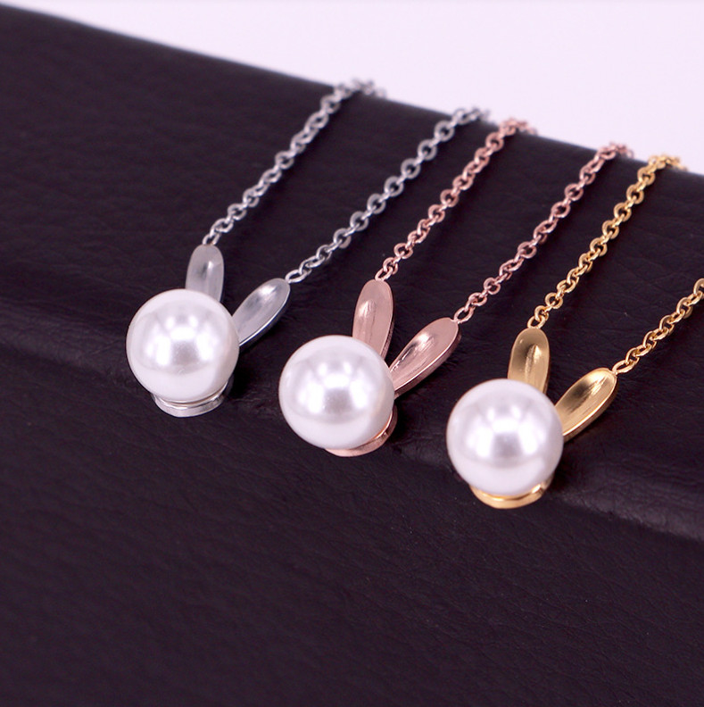 Dây Chuyền Ngọc Trai Tai Thỏ Chất Liệu Titan Không Han Rỉ TT 4486