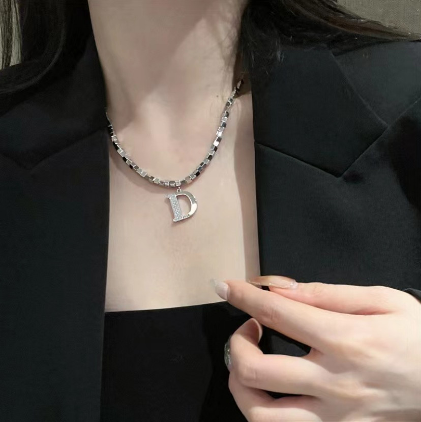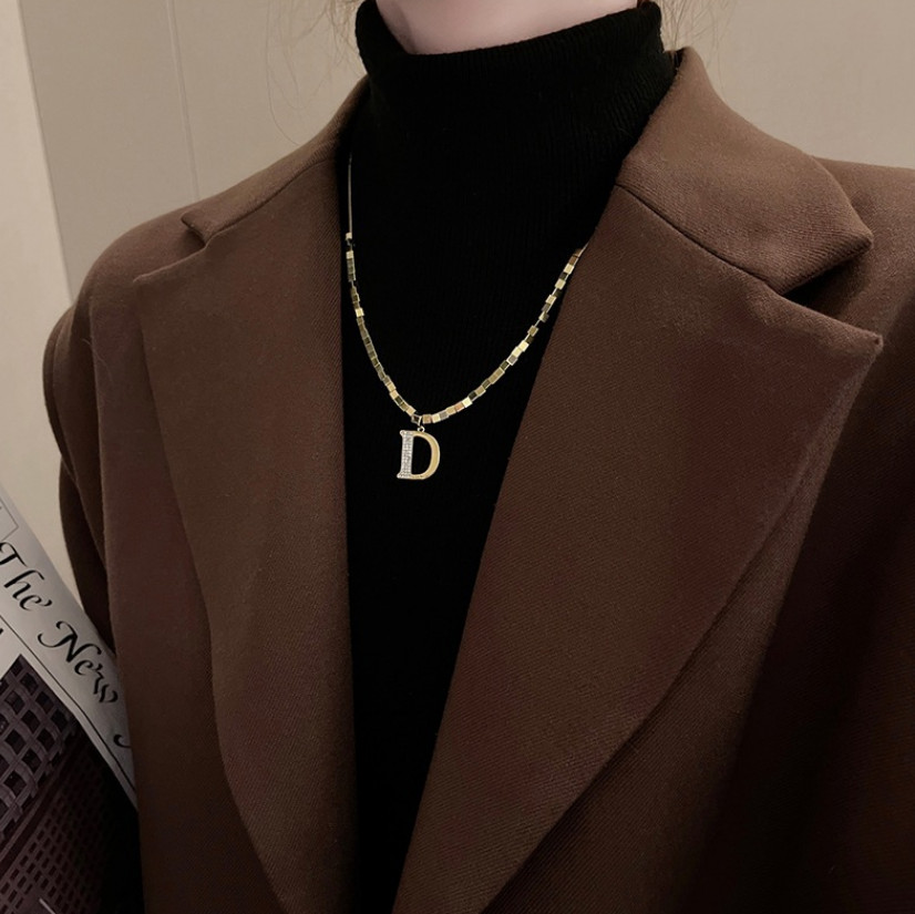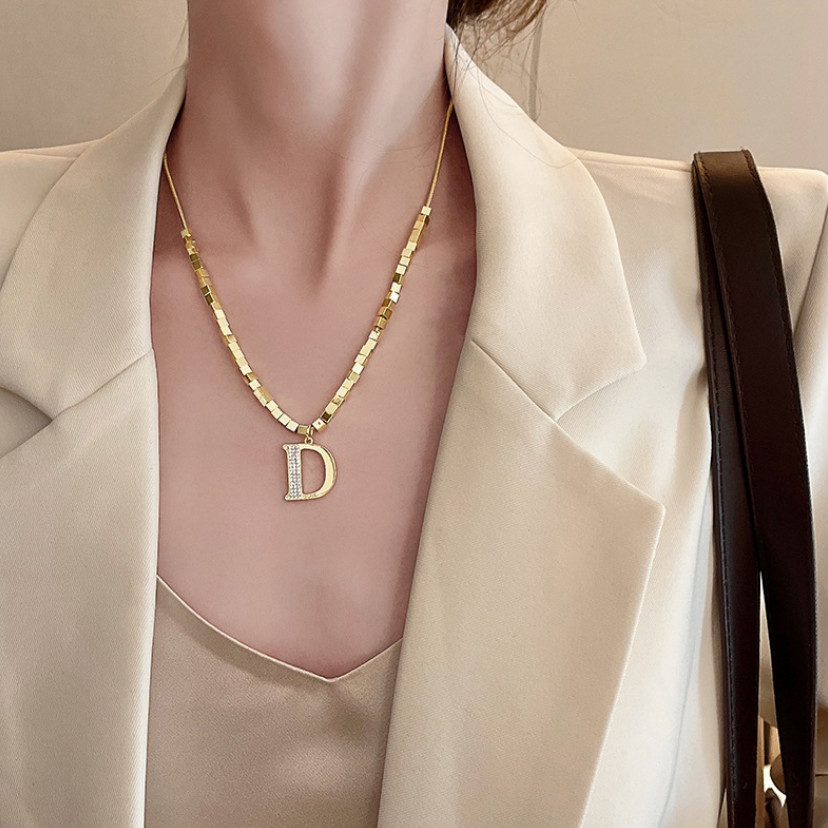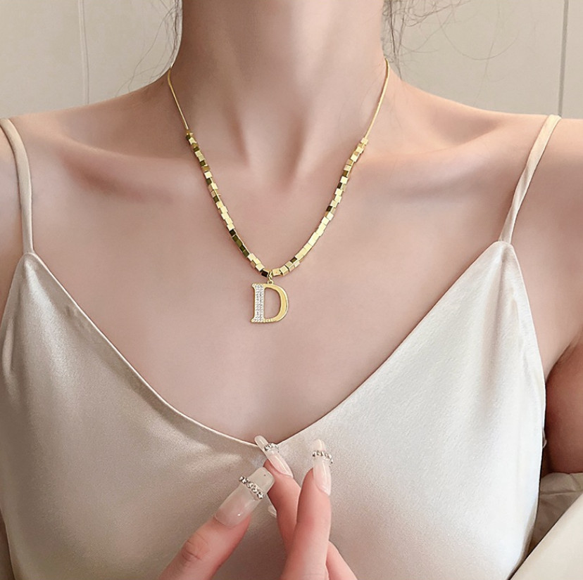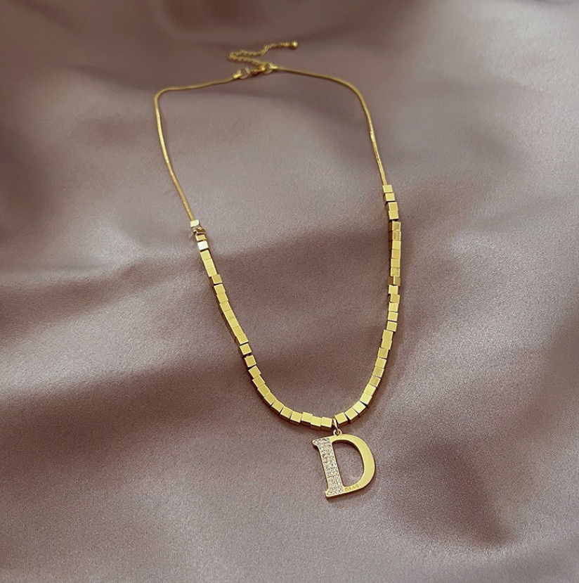 Dây Chuyền Nữ Chữ D Phong Cách Sang Trọng Titan Ko Đen TT5045