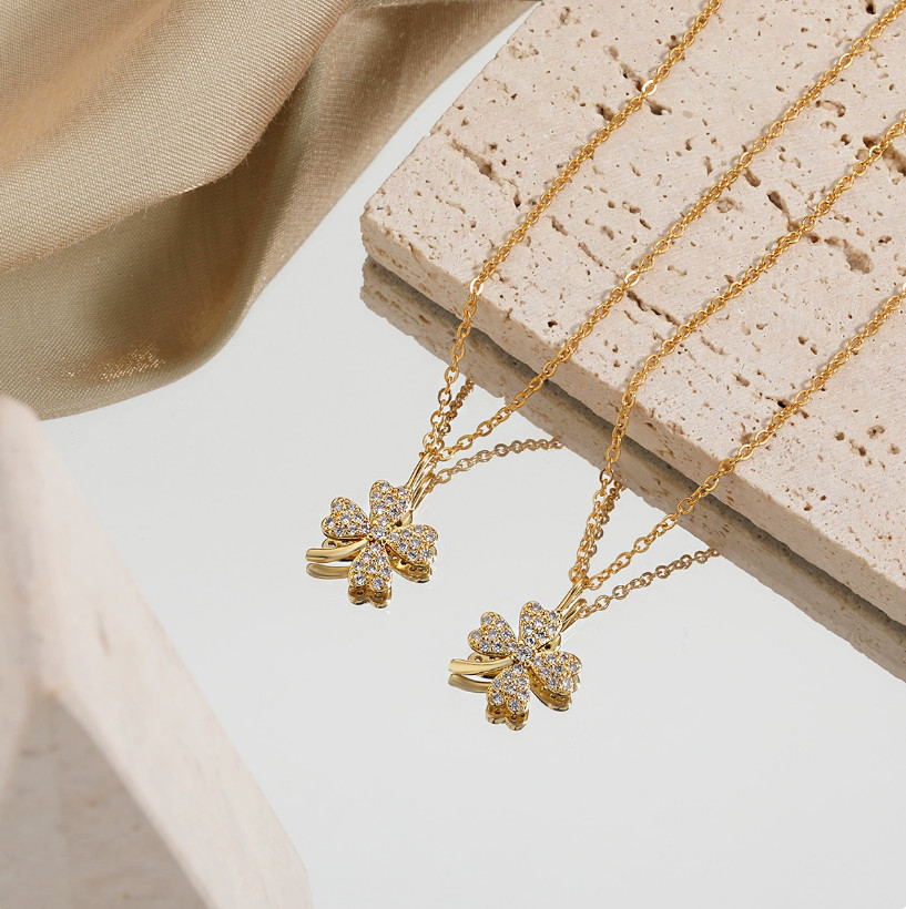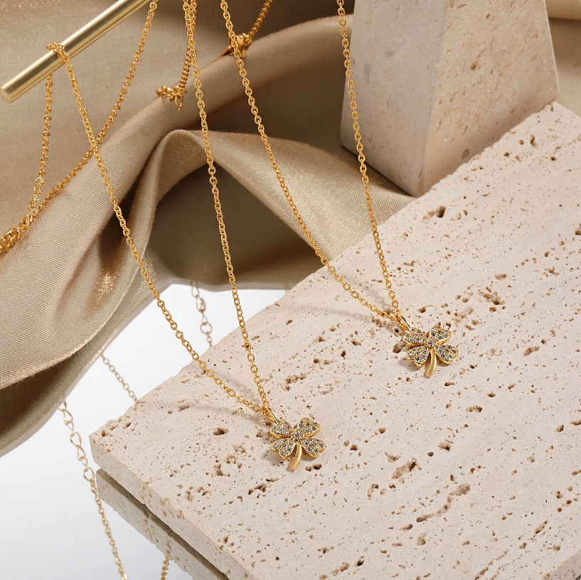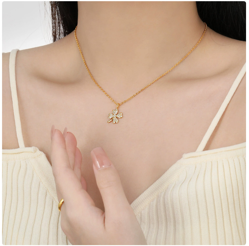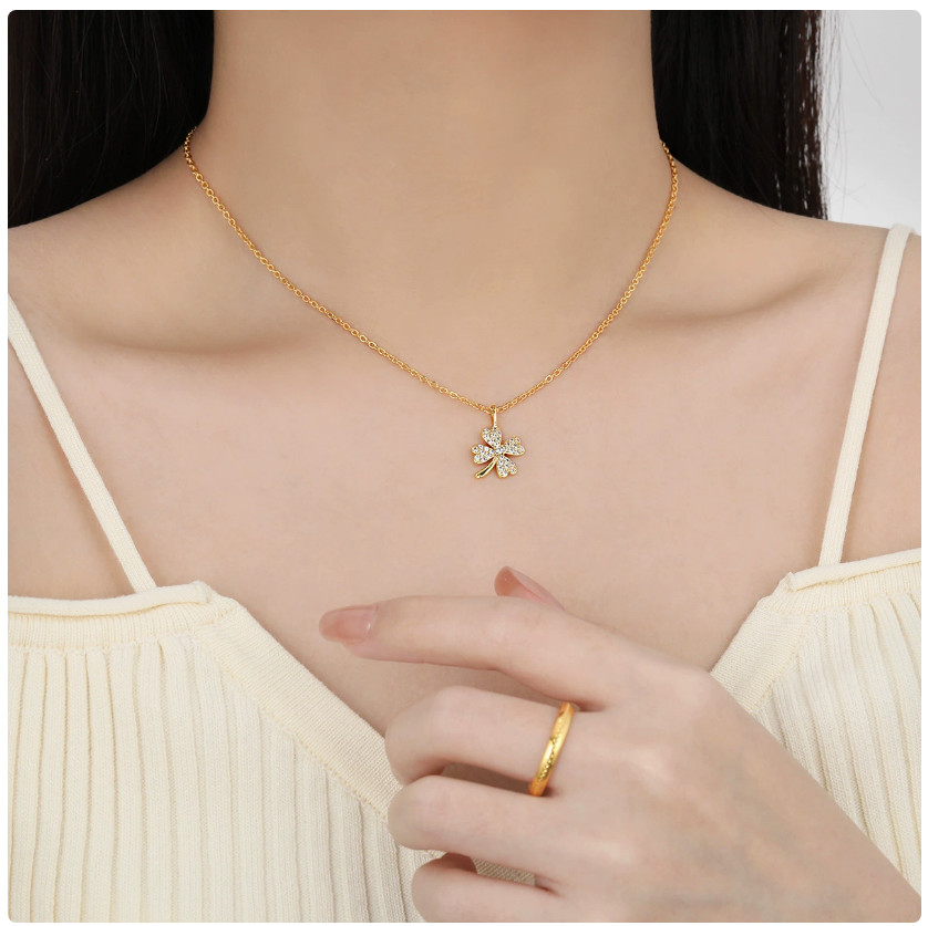 Dây Chuyền Nữ Cỏ 4 Lá Đính Đá Zircon Titan Ko Đen TT5127