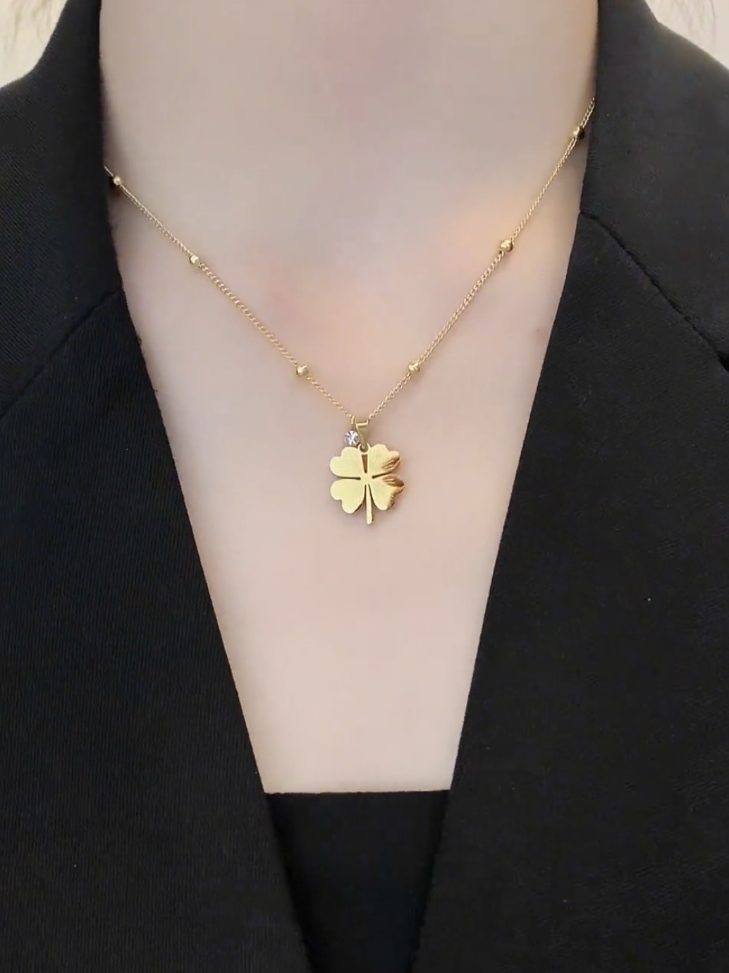 Dây Chuyền Nữ Cỏ 4 Lá Titan Ko Đen TT4934