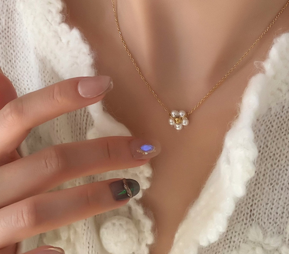 Dây Chuyền Nữ Hoa Cúc Ngọc Trai Titan Không Han Rỉ TT4582