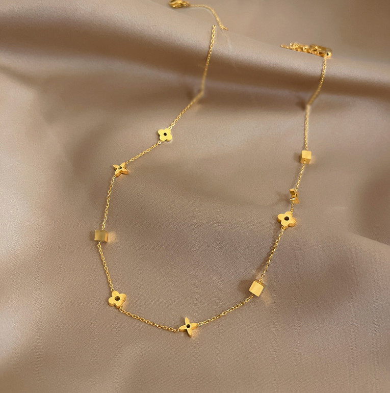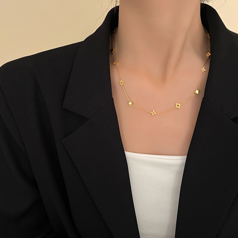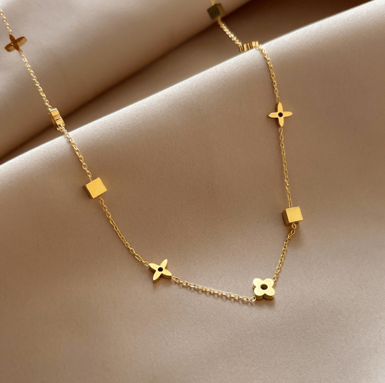 Dây Chuyền Nữ Hoa Văn Nhỏ Xinh Titan Ko Đen TT5029