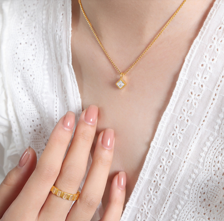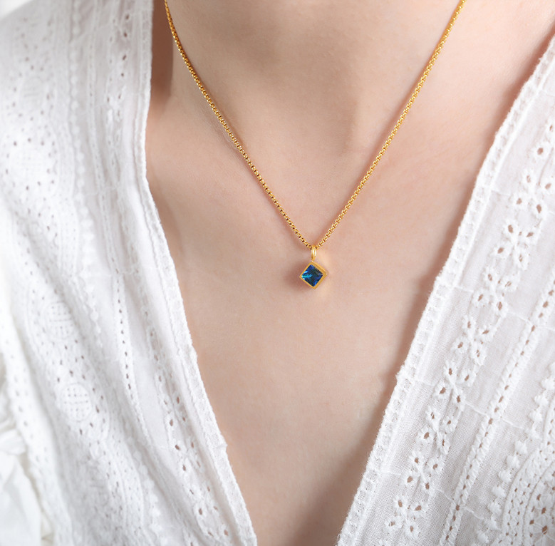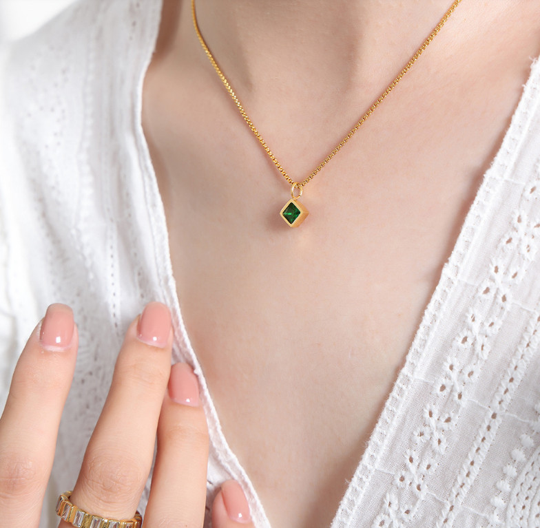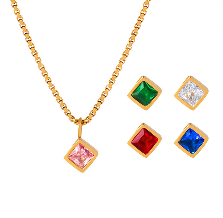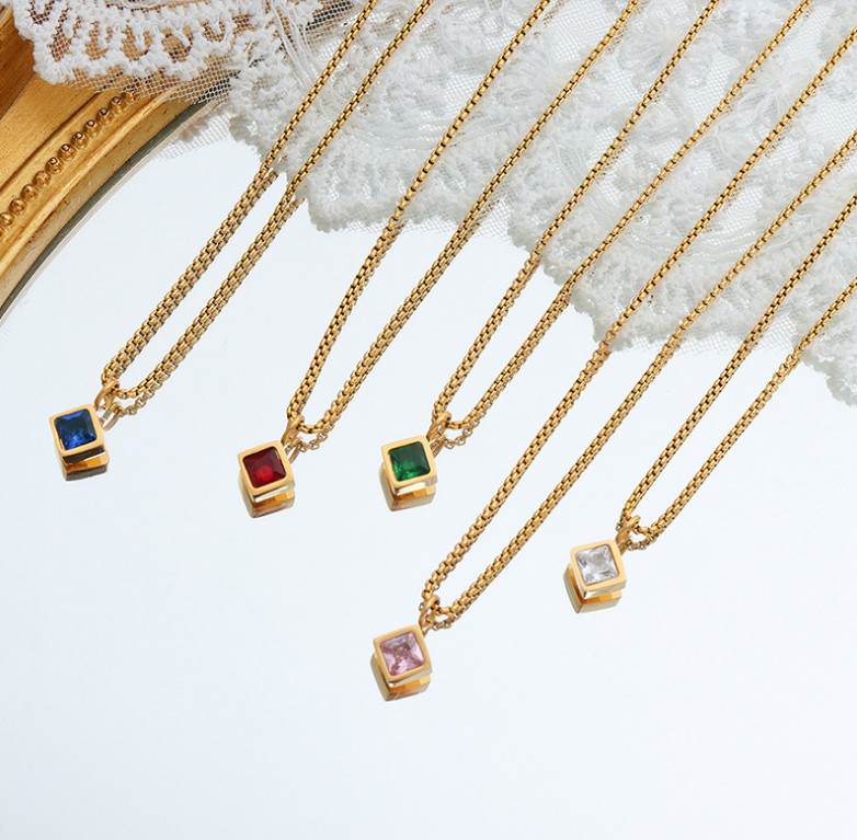 Dây Chuyền Nữ Mặt Đá Vuông Nhiều Màu Titan Ko Đen TT 4761