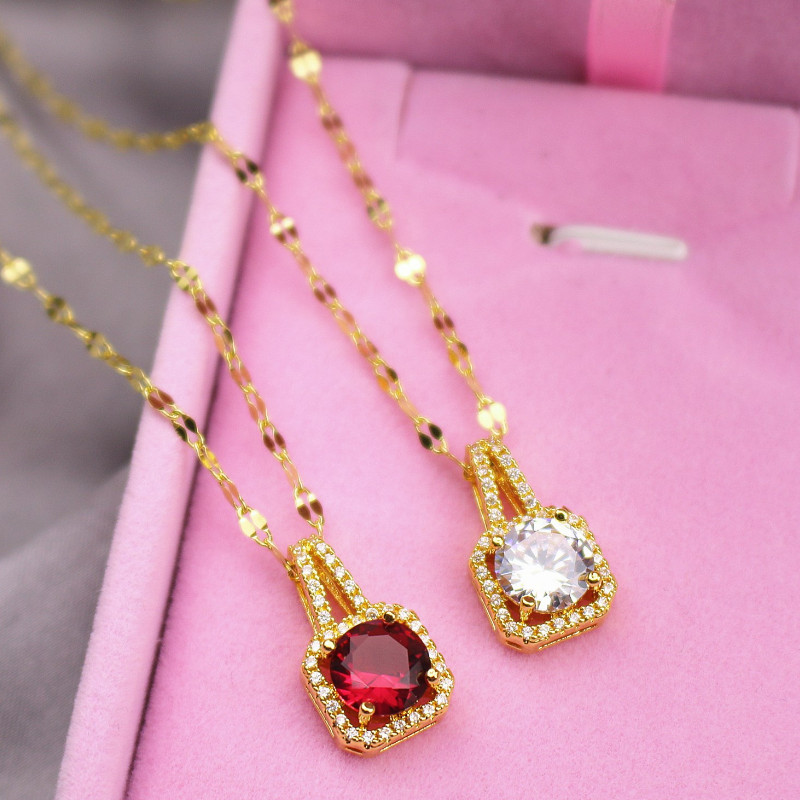 Dây Chuyền Nữ Mặt Đá Vuông Titan Ko Đen TT 3757