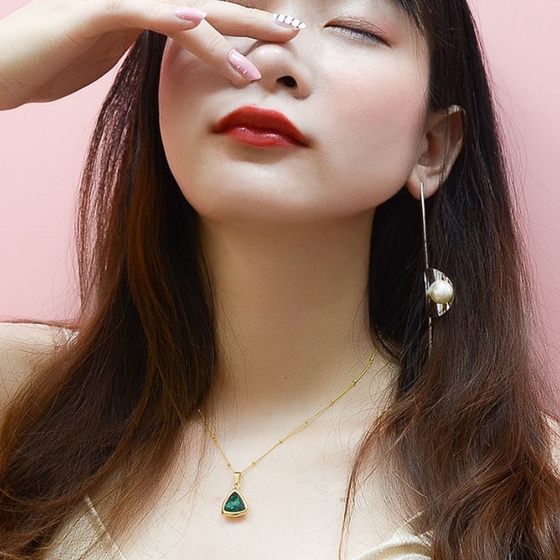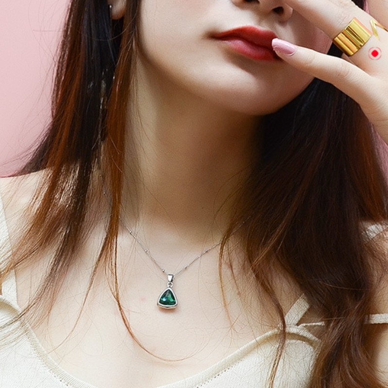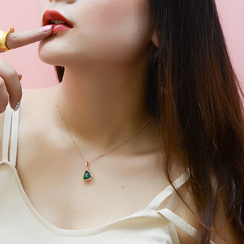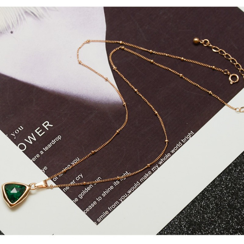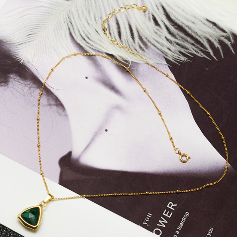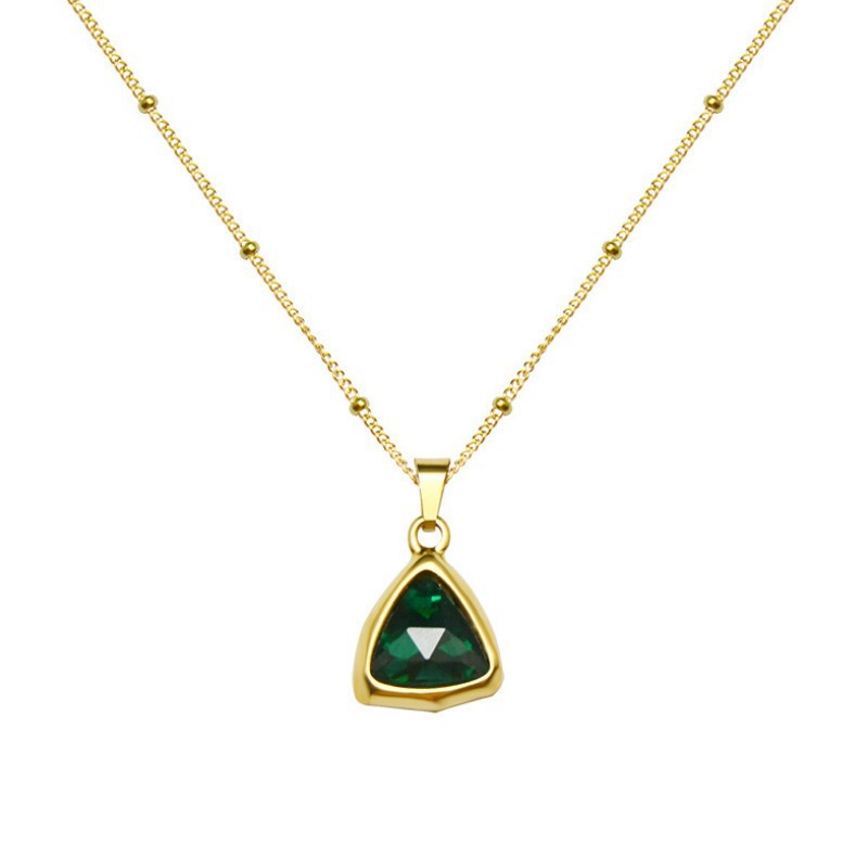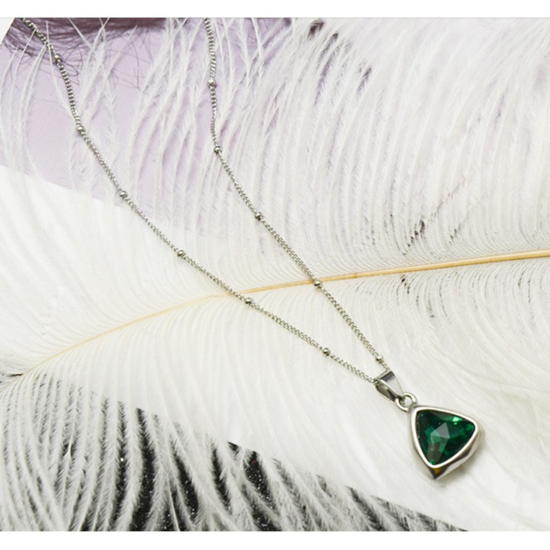 Dây Chuyền Nữ Mặt Tam Giác Đá Xanh Titan Ko Đen TT 2852