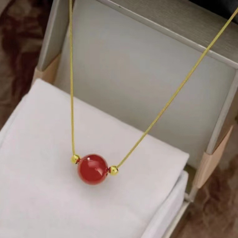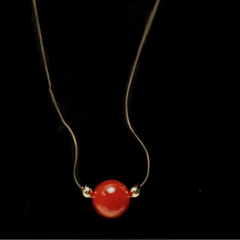 Dây Chuyền Sợi Mì Mặt Trái Châu Đá Đỏ Titan Ko Đen TT 4371