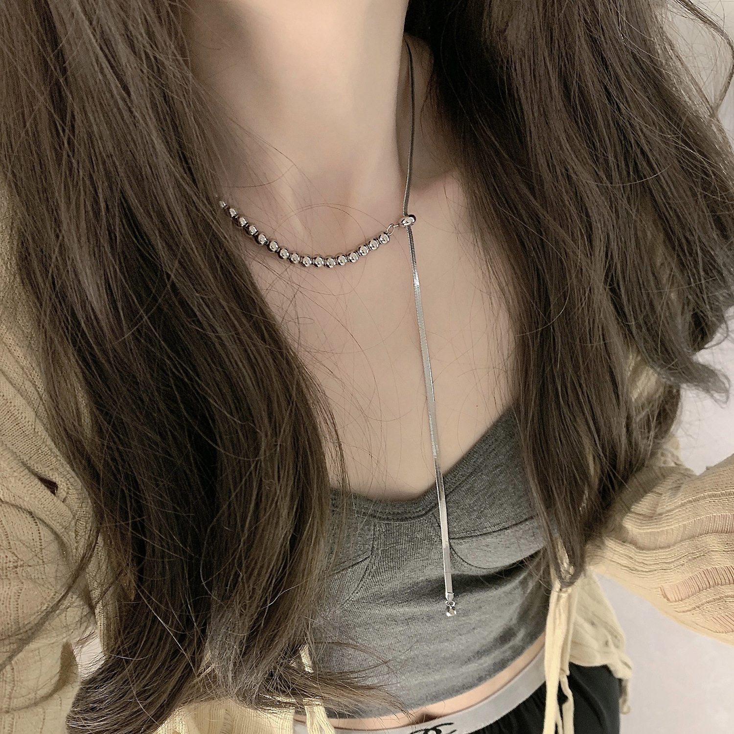 Dây Chuyền Titan Nữ Kiểu Chữ Y Titan Ko Đen TT4817