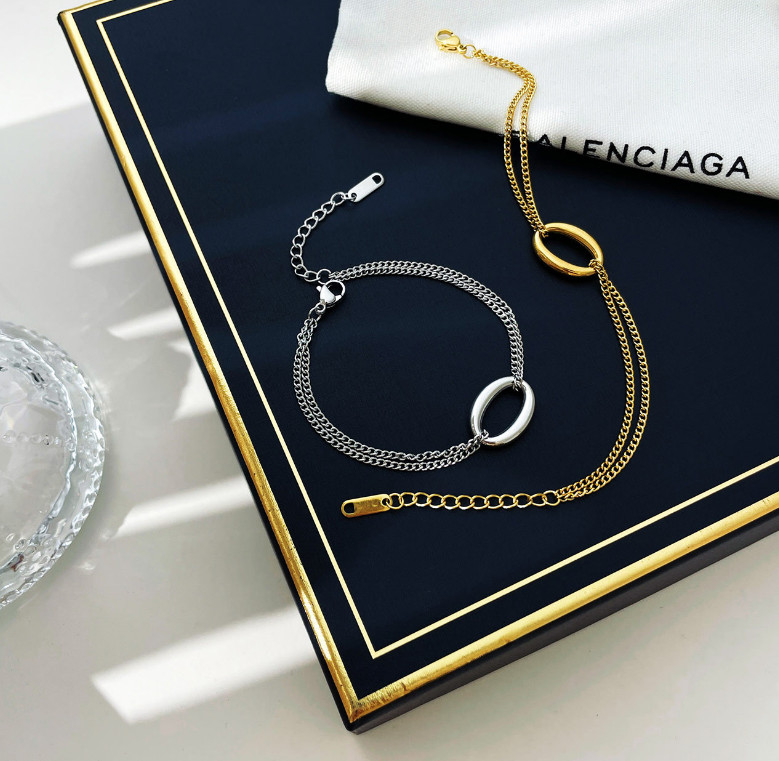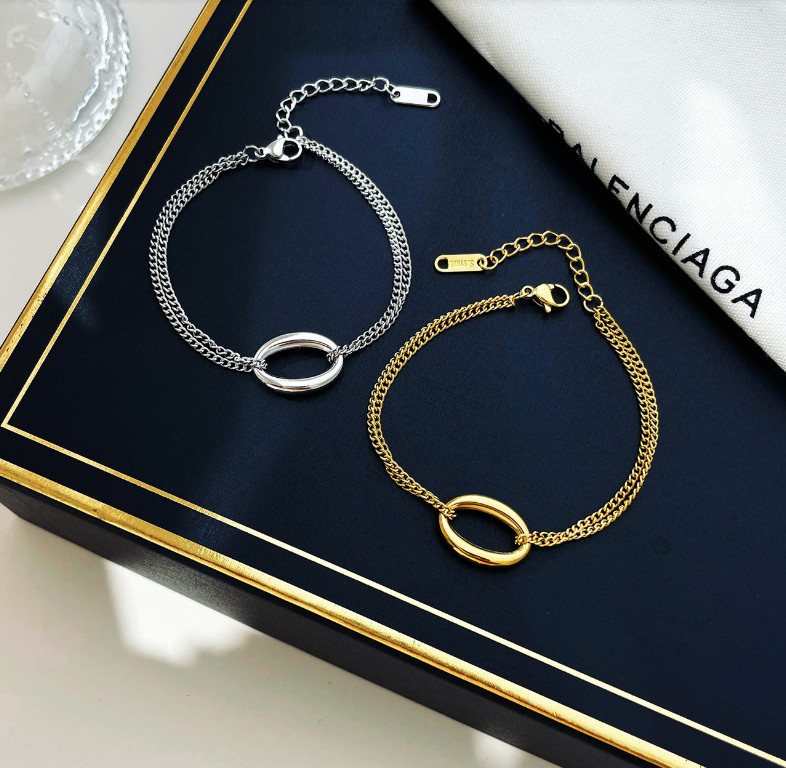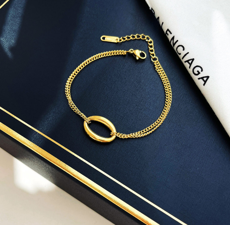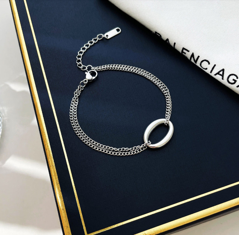 Lắc Tay 2 Lớp Mặt Bầu Dục Titan Ko Đen TT4693