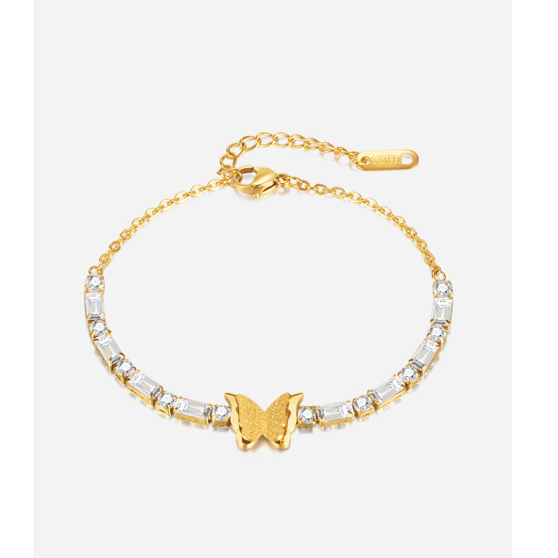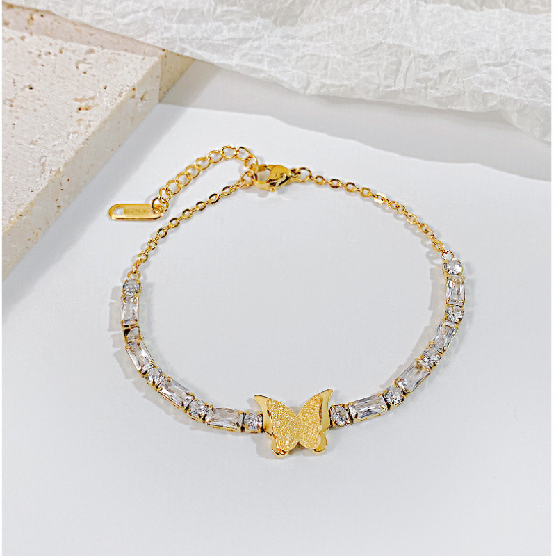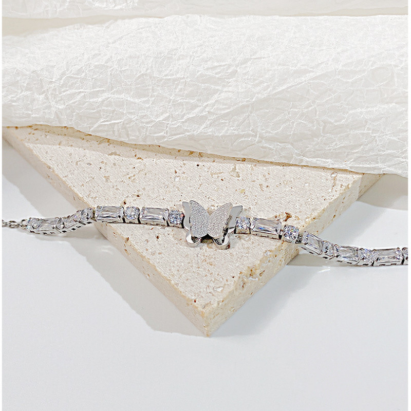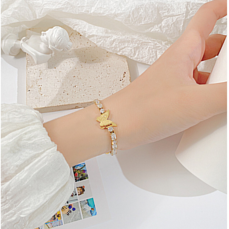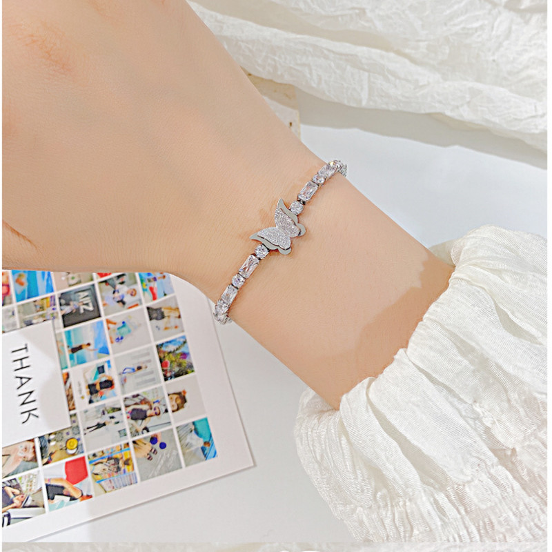 Lắc Tay Nữ Bướm Đá Zircon Sang Trọng Titan Ko Đen TT 4435