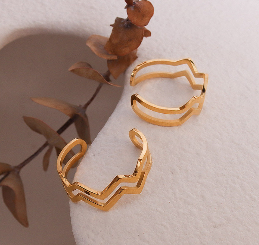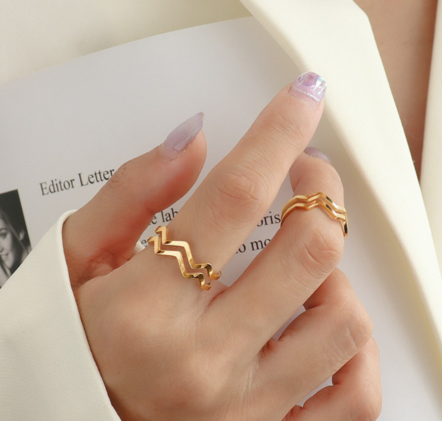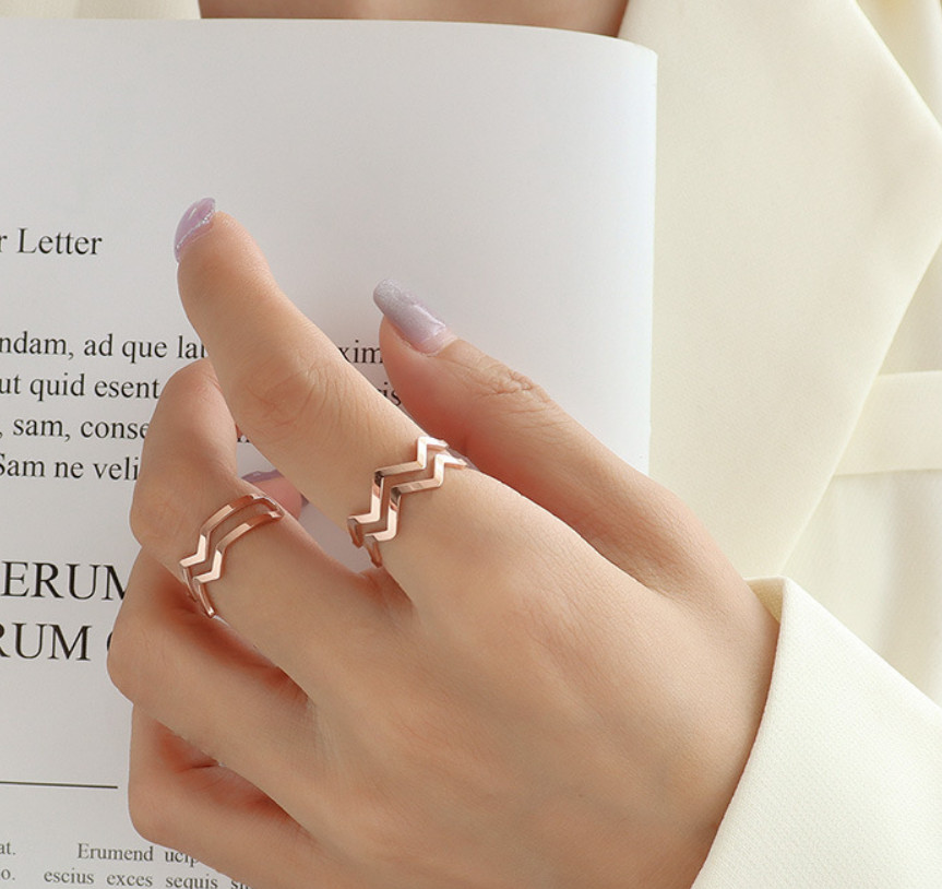 Nhẫn Nữ 2 Vòng Zic Zac Titan Không Đen TT4583 – Free size